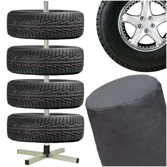 Zestaw zawiera pokrowiec, którym można przykryć ułożone opony, chroniąc je od zabrudzeń i kurzu.