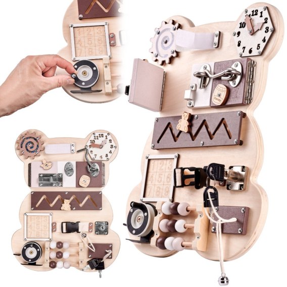 TABLICA MANIPULACYJNA SENSORYCZNA MIŚ BRĄZOWA