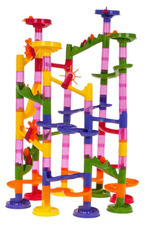 Kolorowy, wytrzymały, tor z kuleczkami dla dzieci od 3 - go roku życia, ale z pewnością wzbudzi zainteresowanie również starszych dzieci. Gra polega na samodzielnym zbudowaniu konstrukcji toru, a potem puszczaniu piłeczek tunelami. Można wzorować się na instrukcji obrazkowej, znajdującej się w zestawie lub stworzyć swoją własną wieżę. Puszczanie w ruch kuleczek i obserwowania jak pokonuje kręte tunele, daje mnóstwo radości, uspokaja i wycisza. Zabawka pozytywnie wpływa na rozwój kreatywności, wyobraźni i zdolności manualnych.