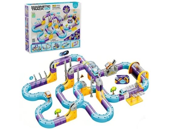 Tor Magnetyczny Zjazd samochodowy Kolejka Zjeżdżalnia Pociąg Klocki Konstrukcyjne 128 el.