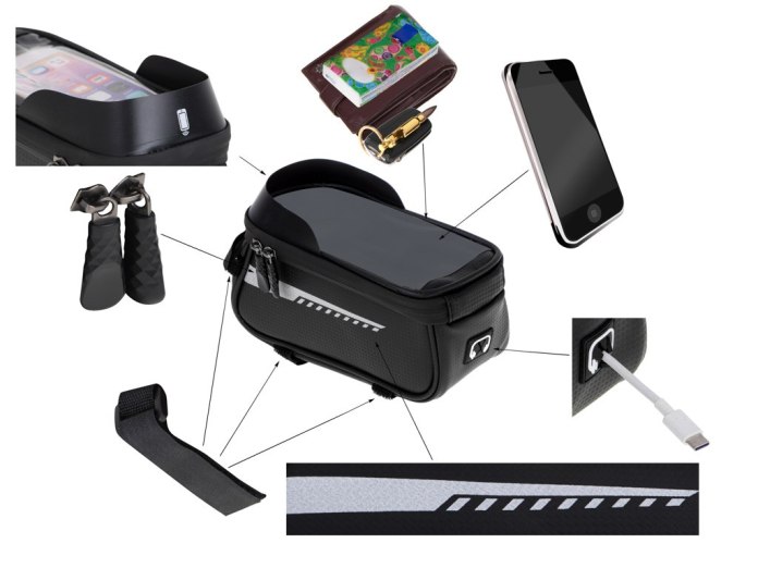 Praktyczna, wodoodporna torba rowerowa na ramę z uchwytem na telefon. Zapewnia wygodny dostęp do nawigacji i bezpieczne przechowywanie najpotrzebniejszych rzeczy podczas każdej jazdy. 🚴♂️📱