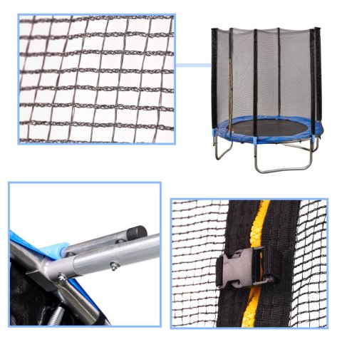- trampolina została wyposażona w niezbędne elementy, takie jak siatka