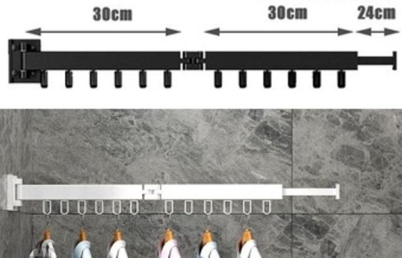 Wieszak ścienny wysuwany teleskopowy 84cm czarny