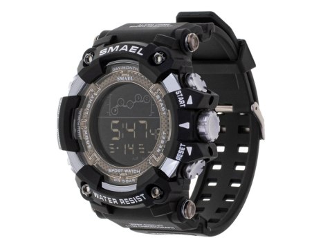 ZEGAREK MĘSKI MILITARNY WODOODPORNY LED SMAEL CZARNY Dobrze jest kontrolować czas, przynajmniej w takim stopniu, na jaki pozwala zegarek. Nie pomoże cofnąć się w czasie, ale przynajmniej pozwoli nie spóźnić się na spotkanie! Męski zegarek militarny marki Smael bez wątpienia doda Ci pewności siebie! Szerokość tarczy wynosi aż 6 cm, dzięki czemu wyświetlane informacje są zawsze widoczne, a noszenie zegarka okazuje się wyjątkowo wygodne! Jedną z ważniejszych funkcji zegarka jest jego wodoodporność - sprawdzi się nie tylko w trakcie deszczu, ale również świetnie nada się dla osób lubiących spędzać czas nad wodą. Bez wątpienie nie zawiedzie rybaków i wszystkich innych outdoorowców! Do zasilania zegarka wykorzystana została pojemna bateria CR2025, zapewniając długi czas pracy i bezobsługowe korzystanie! Duża regulacja długości paska, wynosząca maksymalnie aż 24 cm, pozwoli dopasować zegarek niezależnie od Twojej budowy ciała, nawet jeśli jesteś potężnym wikingiem! Dodatkowo szerokość paska to 22 mm, co zapewnia wysoki komfort korzystania! Design idealnie wpasuje się w potrzeby mężczyzn i podkreśli ich charakterystyczne cechy. Zastosowane materiały są wyjątkowo wytrzymałe, co zapewnia naprawdę satysfakcjonującą trwałość, a zegarek przeżyje z Tobą niejedną ciekawą przygodę! Produkt został zapakowany w estetyczne opakowanie, dzięki czemu idealnie sprawdzi się jako prezent!   Parametry techniczne: Wodoodporność: tak zasilanie: CR2025 ( w zestawie) Średnica tarczy: 6 cm Maksymalna długość paska: 24 cm Szerokość paska: 22 mm Wymiary opakowania: 11 cm x 8 cm x 7.5 cm Produkt zapakowany w estetyczne kartonowe opakowanie.