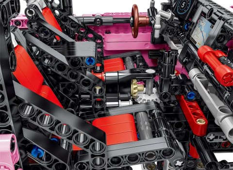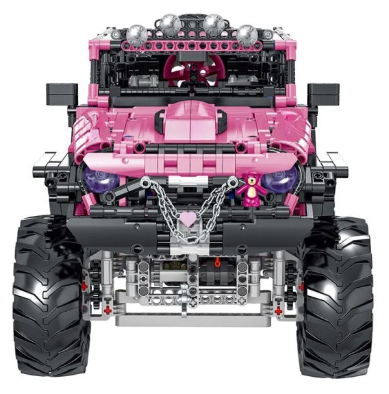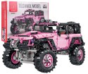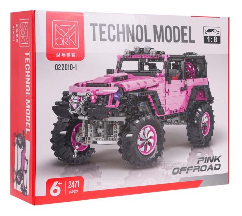 Zestaw 2471 klocków konstrukcyjnych do samodzielnej budowy terenowego samochodu Pink Offroad. Model wykonany w skali 1:8. Zabawka przeznaczona dla dzieci od 6-go roku życia. Posiada ruchome elementy, jak drzwi, dach i lusterka oraz gumowe, skrętne koła. Dodatkowo posiada niezależne amortyzatory i hak z przodu auta. W zestawie dołączono instrukcję obrazkową. Układanie klocków konstrukcyjnych rozwija u dzieci zdolności manualne, wyobraźnię przestrzenną i cierpliwość.