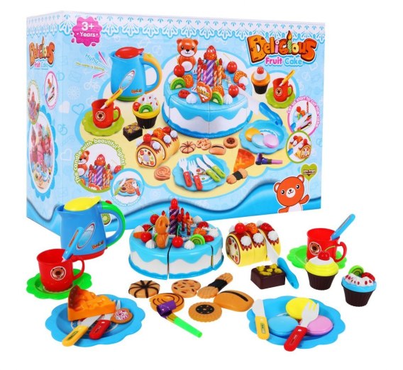 Zestaw do organizacji Przyjęć dla dzieci 3+ niebieski Tort + Słodycze + Interaktywna świeczka + Akcesoria 80 el.