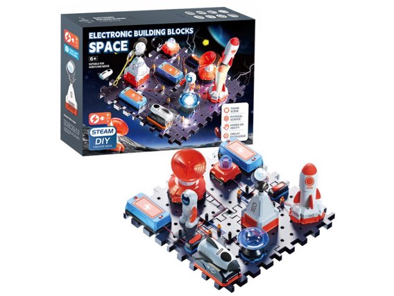 Zestaw przenosi naukę o obwodach elektrycznych z nudnej wiedzy do trójwymiarowego świata nieskończonych, kosmicznych przygód. Gdy dziecko wszystko prawidłowo połączy będzie miało możliwość uruchomić różne elementy bazy kosmicznej.