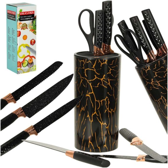 Zestaw noży kuchennych + nożyczki marmur POWYSTAWOWE